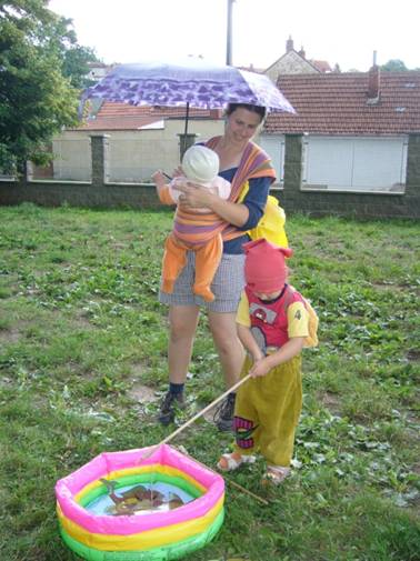 Trasa 5 kilometrů vedla přes pole k Ponětovickému rybníku a proti proudu Říčky do Šlapanic. Bylo třeba splnit různé úkoly jako skočit ze stohu slámy, nanosit vodu v dlaních do kyblíku, trefit se míčkem do plechovek... K tomu se zodpovídaly národopisné otázky, třeba co je "mája", "pohřebenář" nebo "baldachýn". Musíme přiznat, že jsme občas tápali, ale teď už to víme.