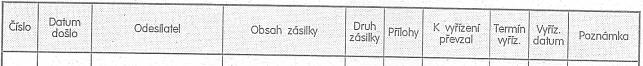 Závazný vzor rubrik knihy došlé pošty, knihy odeslané pošty a archivní knihy